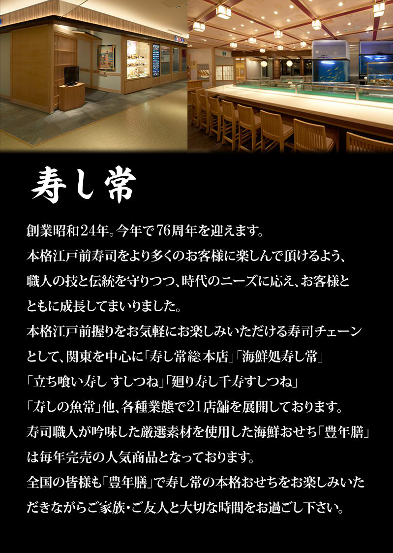 毎年、多くのお客様からご好評いただいている寿し常自慢のおせちが、さらにパワーアップしました!!
