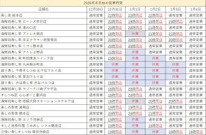 年末年始の営業時間を上記画像のように変更させていただきます。